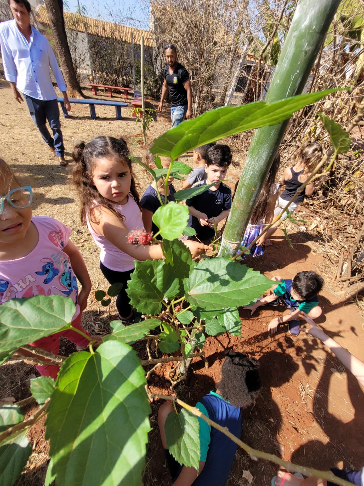 As crianças participaram de vivências educativas que abordaram a importância das árvores frutíferas e dos recursos naturais para a qualidade de vida. A ação busca despertar, desde cedo, a consciência sobre sustentabilidade, estimulando hábitos responsáveis e a valorização do meio ambiente.